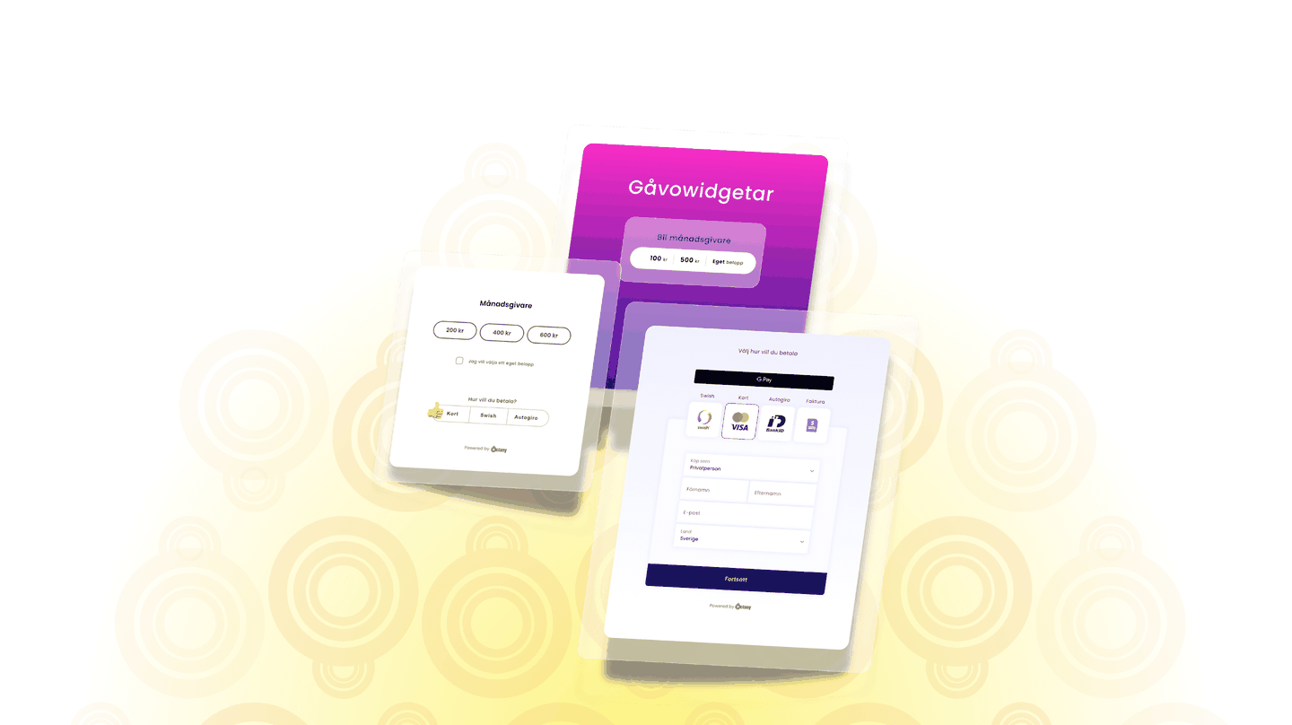 Giving by card is a popular payment method, both for one-time donations and recurring donations such as monthly donations and memberships. Card payments are a good alternative to Autogiro and Swish – for people who lack a Swedish personal ID number and/or Swish.